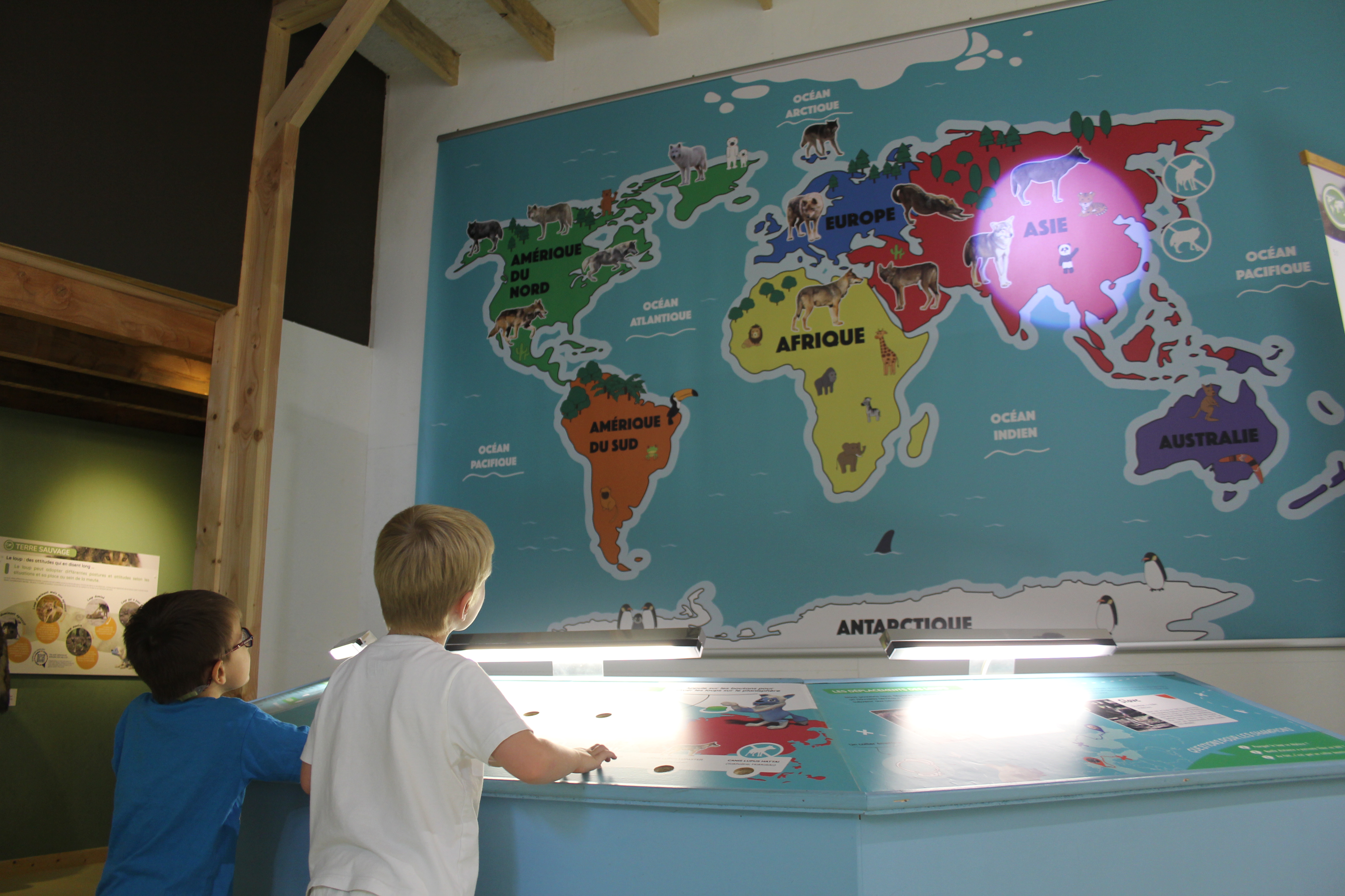 It’s a unique experience, with areas that are both fun and educational, not to mention a magnificent 20-hectare outdoor park where the walk takes you past our two wolfdogs, Néïs and Nahele.