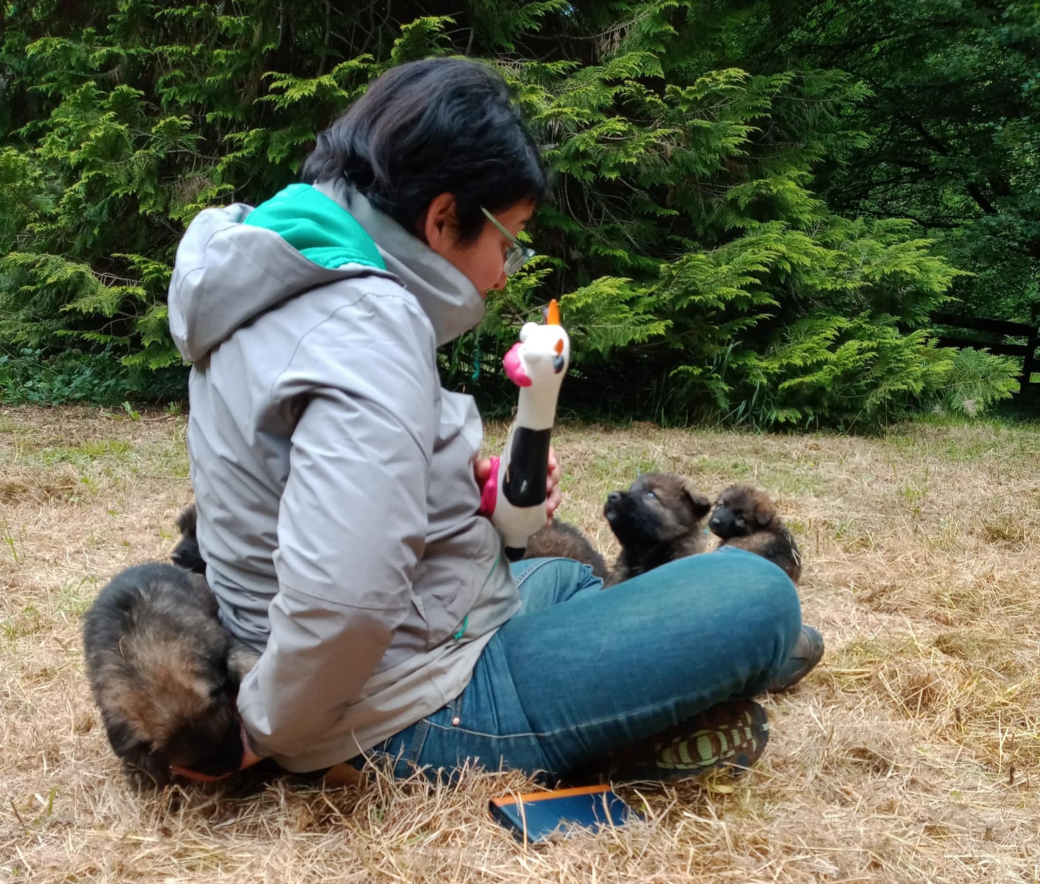 Comme elle l’explique, nous sommes un élevage qui se veut FAMILIAL, avec actuellement deux femelles et un mâle reproducteurs. Privilégiant la qualité plutôt que la quantité, nous avons fait le choix de n’avoir qu’une portée par an. Nous souhaitons en élevant ces merveilleux chiens loups, vivre notre passion en offrant aux futurs adoptants la possibilité de partager leur vie avec un chien loup bien dans sa tête, équilibré, pouvant partager de belles aventures avec ses humains une fois le travail de socialisation effectué. Notre objectif est donc de produire des chiots lupoïdes ET de famille. Nous souhaitons faire naître des OID ayant de bonnes aptitudes aux sports canins pour qu’ils puissent accompagner leurs humains dans leurs activités sportives.