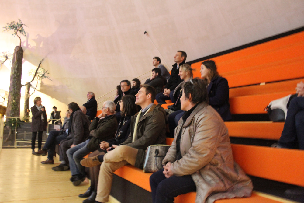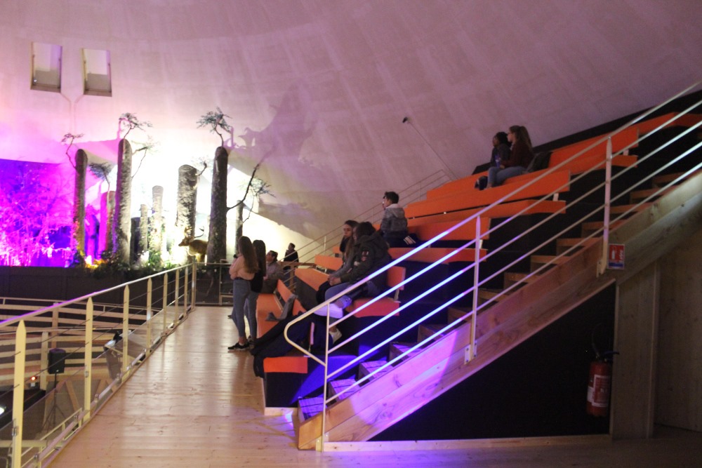 A l’étage, un espace de projection hors norme vous est réservé pour de l’évènementiel (image de 10m * 5m) grâce à notre vidéoprojecteur de la marque « Panasonic ». Gradins accueillant jusqu’à 100 personnes.