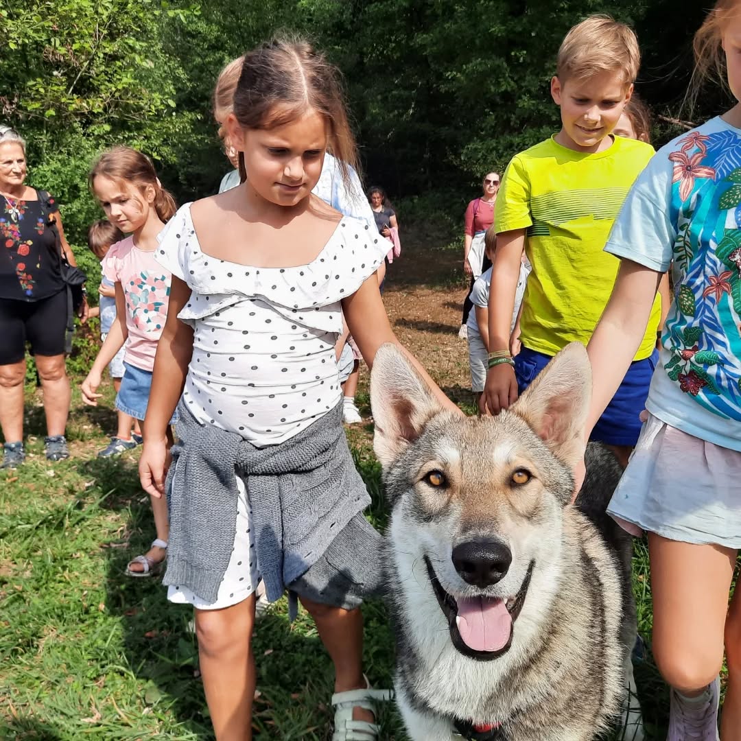 Partez avec un guide à travers bois avec nos chiens-loups pour une promenade dans le parc de la Pyramide du Loup. Une expérience unique pour ceux qui veulent explorer la nature aux côtés de ces magnifiques animaux et l’occasion de découvrir cette race de chien et de mieux comprendre les différences entre un chien-loup et un loup.